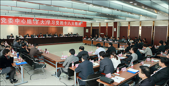 按照校党委学习贯彻党的十八大精神的统一部署,4月17日下午,校党委在综合楼一楼会议室召开中心组(扩大)学习会,集中学习党的十八大精神。校领导周太良、齐毅、李春英、耿广智、董浩平、周蓬、许瑞超、卢奎、李晓春、李东风、周福义、齐健康出席会议。全体正处级干部参加了会议。校党委书记周太良主持会议并作重要讲话,校党委副书记、纪委书记李春英、副校长董浩平、副校长周蓬、副校级调研员周福义分别作主题发言。