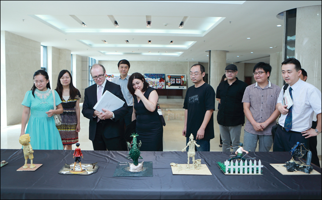 会后堪培拉大学校长一行参观了国际教育学院,进一步了解我校中外合作办学项目软、硬件条件,同时还观看了国际教育学院环境艺术设计、装潢艺术设计和影视动画设计专业学生的毕业作品展,并对参展作品和学院教学、管理工作给予了积极的肯定。