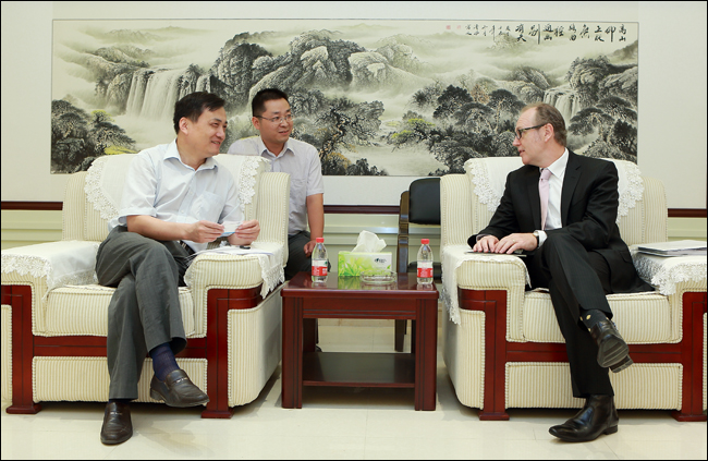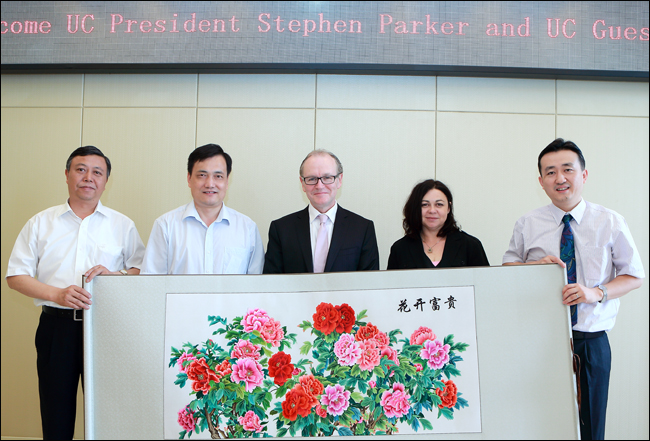 9月4日上午,澳大利亚堪培拉大学校长Stephen Parker、副校长Monique Skidmore教授及校方驻华代表Amber Wang女士一行访问了我校。校长刘文锴、副校长卢奎出席会议并讲话,对外合作与交流处、艺术设计学院、资源与环境学院以及国际教育学院相关领导参会。双方就中澳合作项目的进展情况和下一步合作的方向等议题进行了具体探讨。