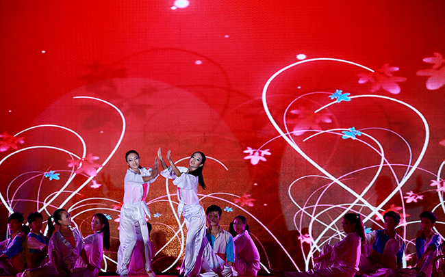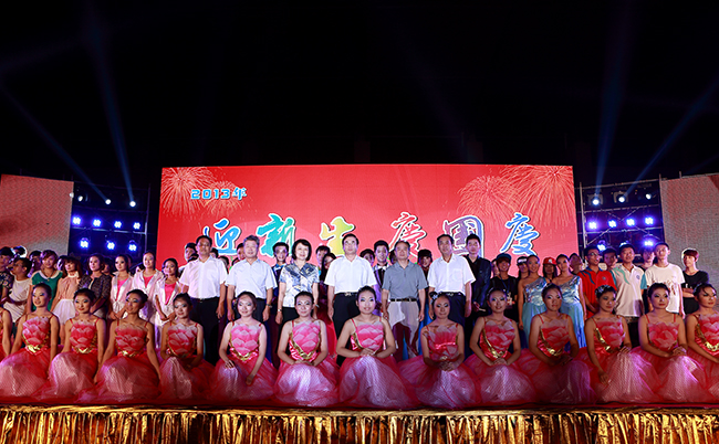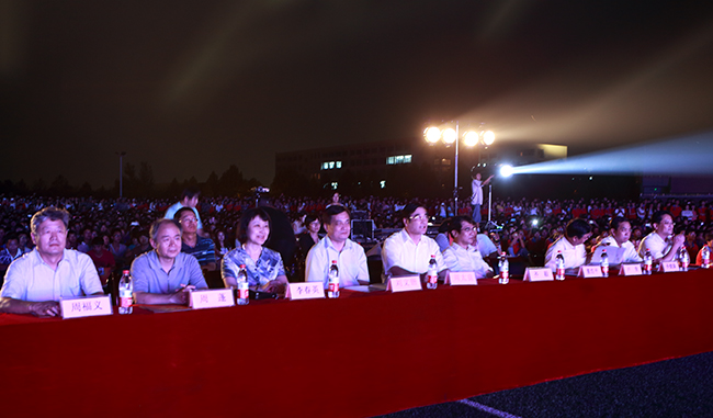 灯光照耀青春的脚步,歌舞放飞梦想的起点。为庆祝伟大祖国64岁生日,同时欢迎来自全国各地的2013级莘莘学子,9月17日晚,由校团委举办的2013年“迎新生·庆国庆”文艺晚会在龙湖校区田径运动场隆重上演。校领导周太良、刘文锴、齐毅、李春英、周蓬、卢奎、周福义、齐健康,校长助理解伟,以及各职能部门、学院负责同志,与广大学生一起观看了演出。