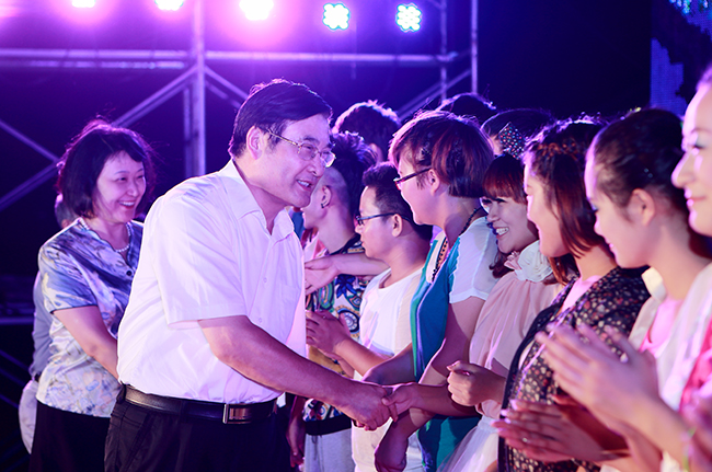 晚会结束后,各位领导亲切慰问了全体演职人员并同他们合影留念。(供稿 陈自龙 摄影 王 琪)