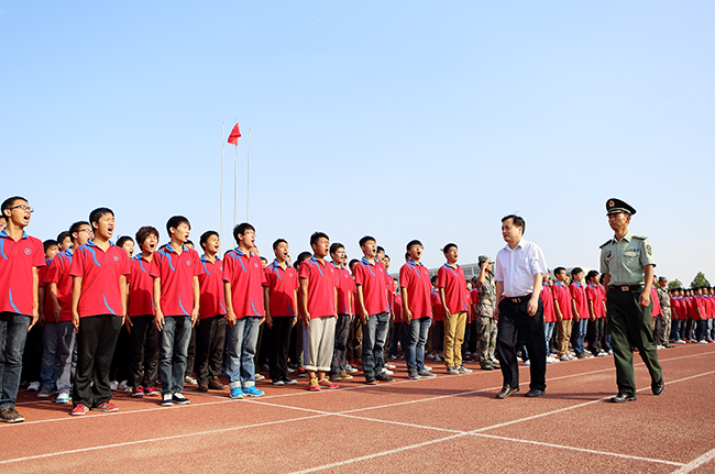 校长刘文锴检阅军训方队