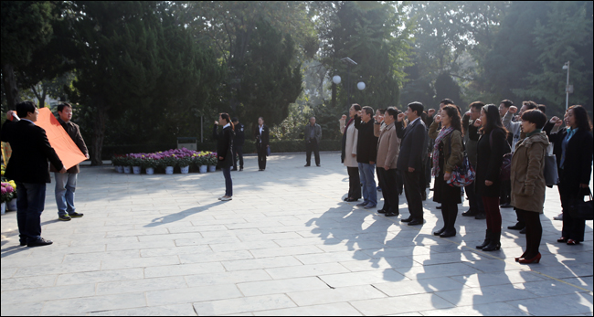 10月26日上午,校工会干部列队缓缓步入焦裕禄烈士陵园。校工会副主席闪惠琴同志主持瞻仰仪式,校工会主席李东风同志向焦裕禄烈士敬献了花篮,全体人员怀着无比崇敬的心情祭奠了焦裕禄陵墓,向焦裕禄陵墓三鞠躬,并重温了入党誓词。随后,大家参观了焦裕禄同志纪念馆,观看了焦裕禄同志生前工作和生活图片,观看《县委书记的好榜样——焦裕禄》纪录片,参观了焦裕禄同志亲自栽种的泡桐。真实再现的“人民的好书记”焦裕禄的光辉形象;看到了焦裕禄同志深入群众调查研究,身先士卒,治理“三害”,战天斗地的动人场面;看到了他心系百姓,为每家每户排忧解难的赤子之心;看到了他与病魔顽强斗争,工作到最后一刻的感人场景,大家现场感受了焦裕禄同志埋头苦干、无私奉献、不屈不挠、艰苦奋斗的精神。