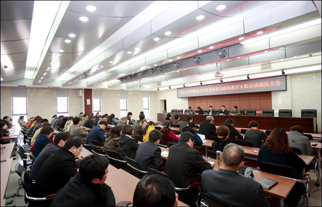 3月13日下午,我校机关党总支在综合楼一楼会议室召开党的群众路线教育实践活动动员大会,对教育实践活动进行统一动员部署。机关党总支书记蔡崇田作动员讲话,机关党总支全体党员和处级干部参加了会议。党委办公室主任、机关党总支组织委员刘永涛主持会议。