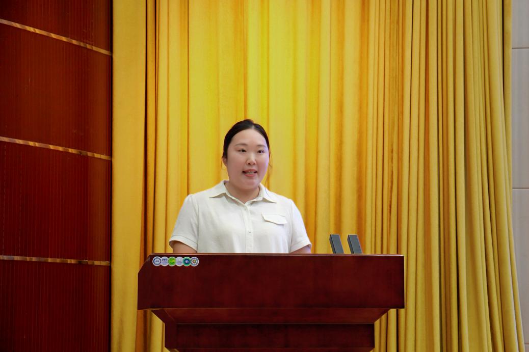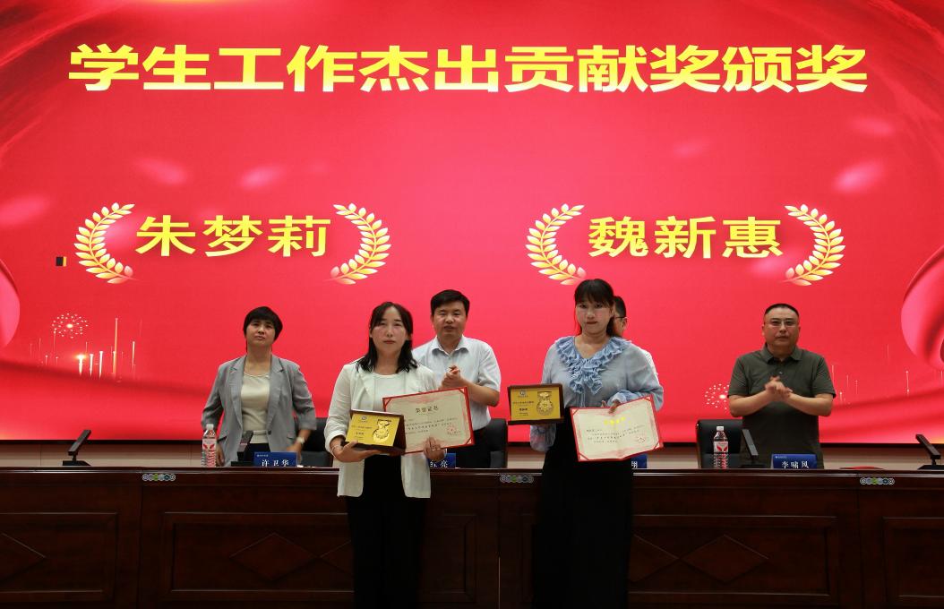 校团委负责人宣读《关于2025年学生工作杰出贡献奖表彰决定》,赵红亮为“学生工作杰出贡献奖”获得者朱梦莉、魏新惠同志颁授奖章、证书。