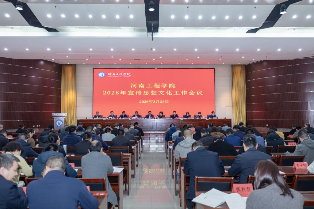 3月23日下午,河南工程学院在综合楼二楼会议室召开2026年宣传思想文化工作会议。校领导、全体中层干部参会,会议由党委书记解伟主持并发言。会议全面总结2025年学校宣传思想文化工作成效,并对2026年重点任务进行部署。