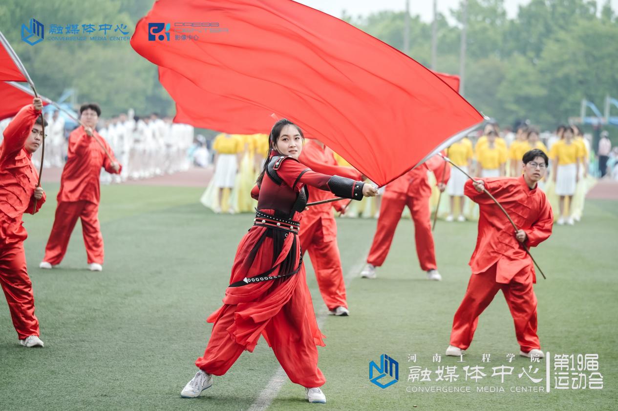 伴随着雄壮激昂的《运动员进行曲》,国旗方队、校旗方队、会徽方队、彩旗方队昂首阔步、依次入场,各学院代表队、教工代表队、裁判员代表队精神饱满、意气风发,迈着整齐矫健的步伐,喊着铿锵嘹亮的口号,充分展现出河工师生团结奋进、朝气蓬勃、追求卓越的精神风貌。