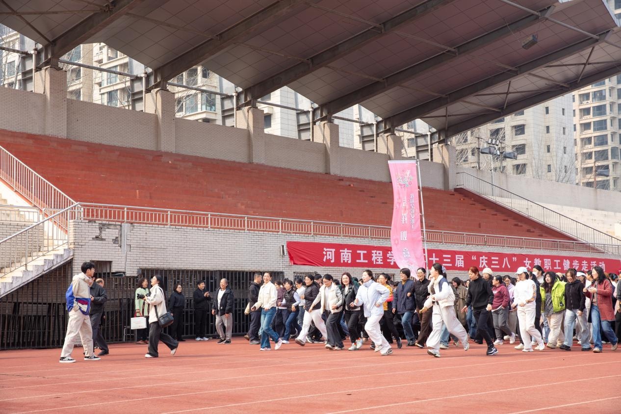 随后,赵红亮宣布河南工程学院第十三届“庆三八”女教职工健步走活动正式开始。随着刘帅霞鸣响发令哨,健步走活动正式拉开帷幕。女教职工们精神抖擞、步履铿锵,沿着预定路线阔步前行,沿途欢声笑语不断,形成一道靓丽的巾帼风景线。大家在行走中感受春日美好,在交流中增进彼此情谊,既锻炼了身体,又舒缓了工作压力,充分展现了我校女教职工积极向上、团结奋进的良好精神风貌。
