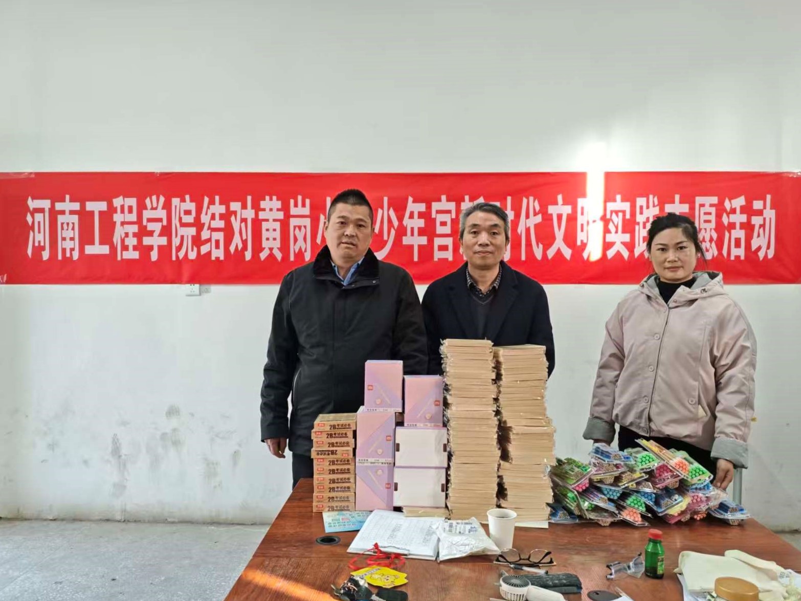 近日,服装学院党委书记潘景果带队赴太康县转楼镇黄岗小学开展“河南工程学院结对黄岗小学少年宫新时代文明实践志愿活动”。黄岗小学校长程勉鹏热情接待。